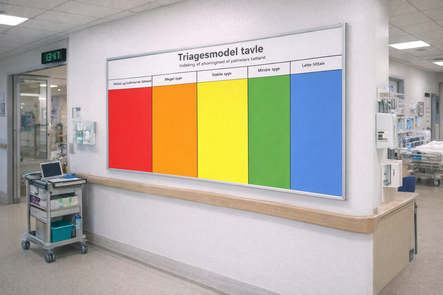 Her på siden tilbyder vi Triage whiteboardtavler til brug ved den nødvendige prioritering, der foregår på eksempelvis sygehuse og i Ældreplejen. Tavlen er velegnet til brug med magneter og magnetlommer.