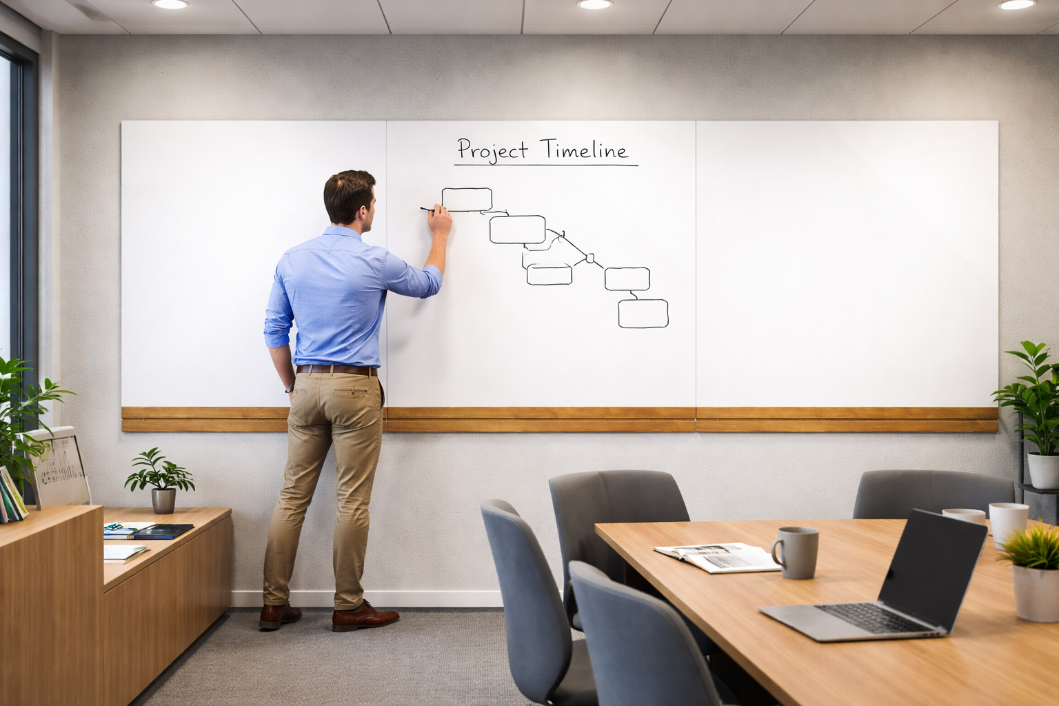 Modulært Whiteboard med Egetræshylde – Fleksibel løsning til moderne rum