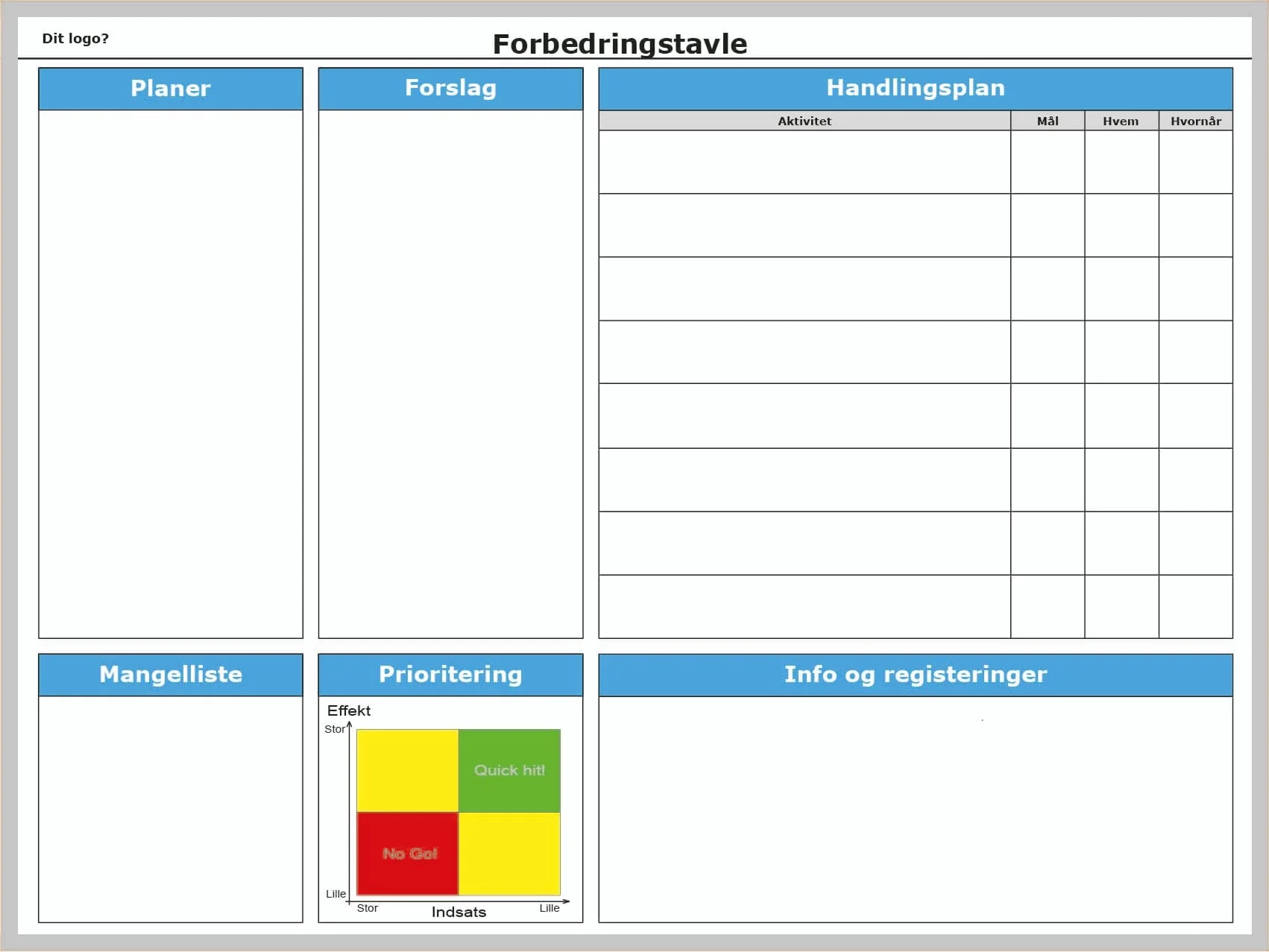 Du kan tilføje eget layout, logo og visuelle kendetegn, så tavlen både er funktionel og giver et professionelt indtryk.